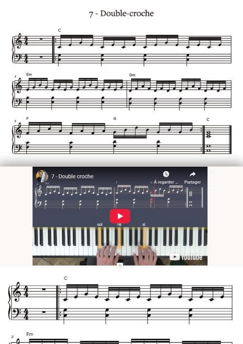 Retrouve les partitions à imprimer ainsi que les partitions interactives pour jouer avec moi par-dessus une batterie !