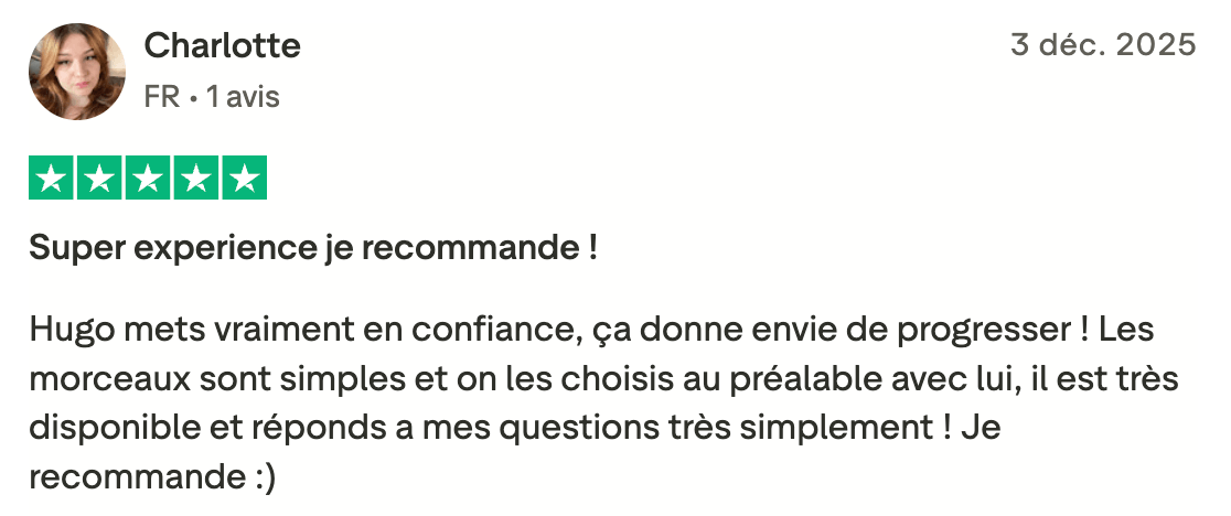 Répond à quelques questions et découvre comment débloquer ton niveau et jouer de vraies chansons, dès aujourd’hui - sans solfège :